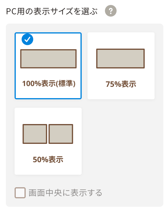 「75%表示」「50%表示」を選んだ場合、「画面中央に表示する」のチェックを入れると、トップページ中央に表示することができます!