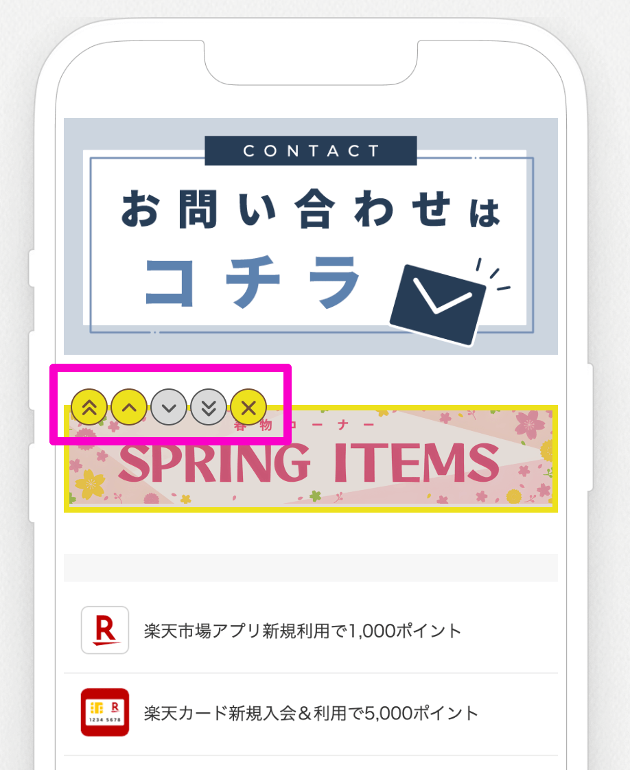 右画面のプレビューで追加されたバナーパーツをお好きな位置に移動してください。