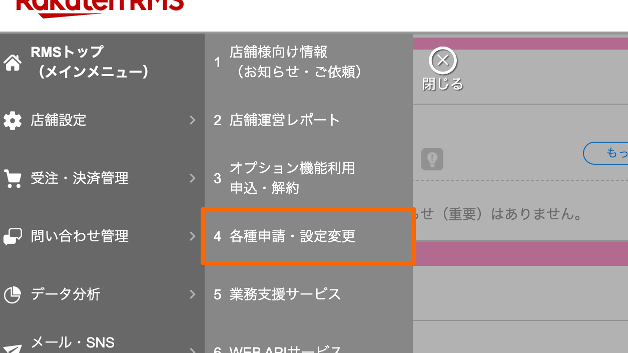 2. RMSの「店舗様向け情報・サービス」をクリック
