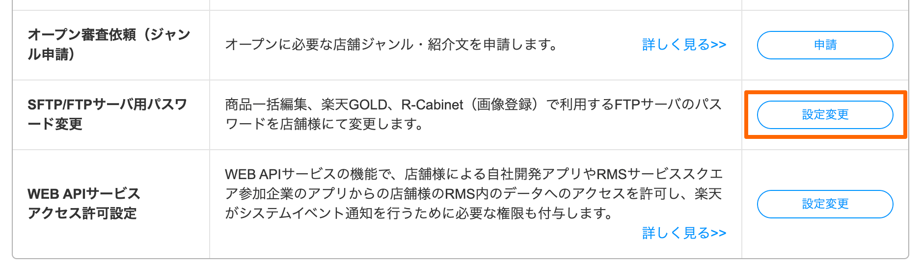 4. 「FTPサーバ用パスワード変更」の【設定変更】をクリック