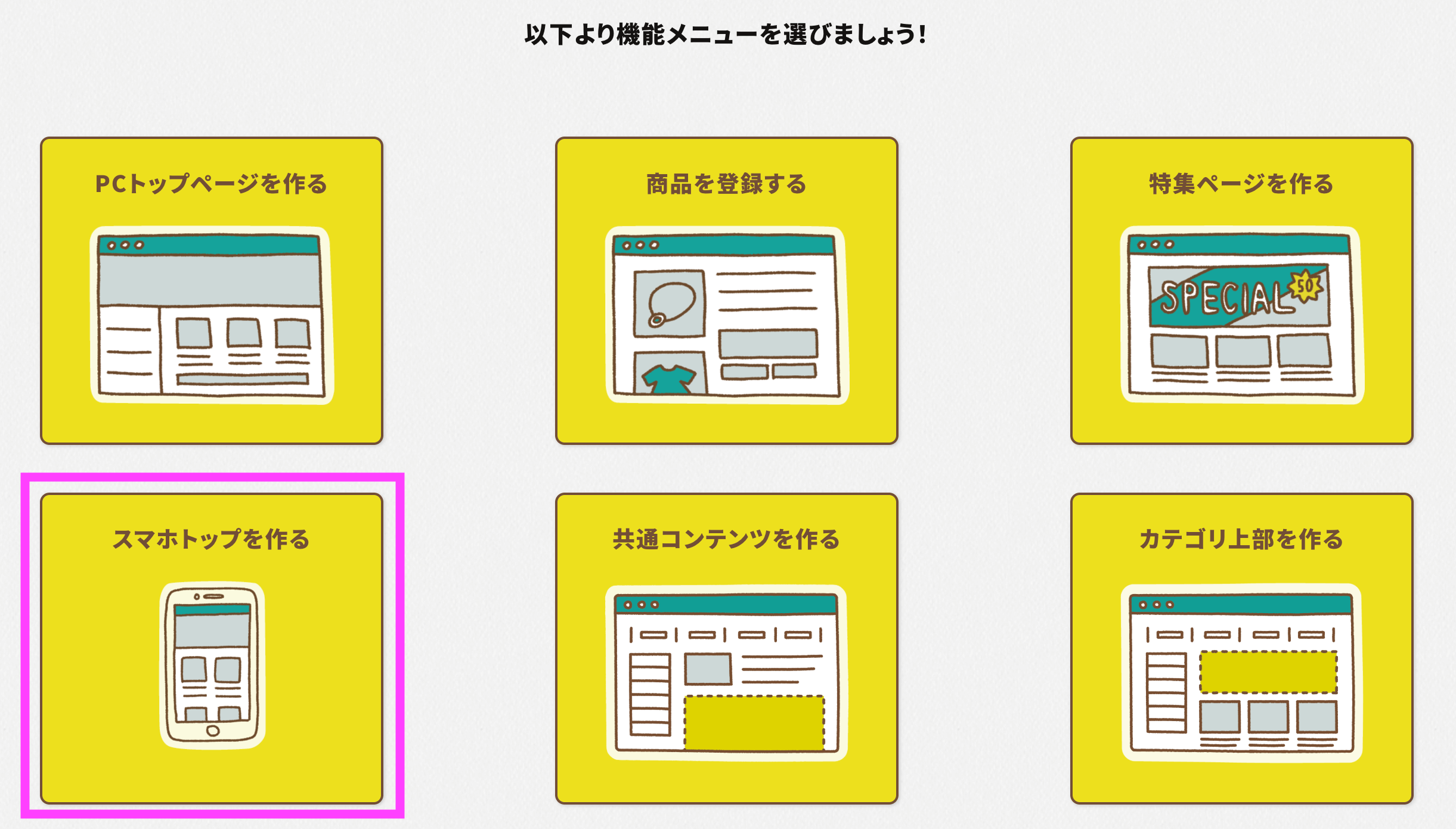 ビーノ管理画面の「スマホトップを作る」からスマホトップの作成・反映を行ってください。