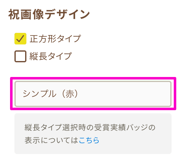 受賞画像のデザインタイプは「正方形タイプ」「縦長タイプ」の2タイプから選択できます。