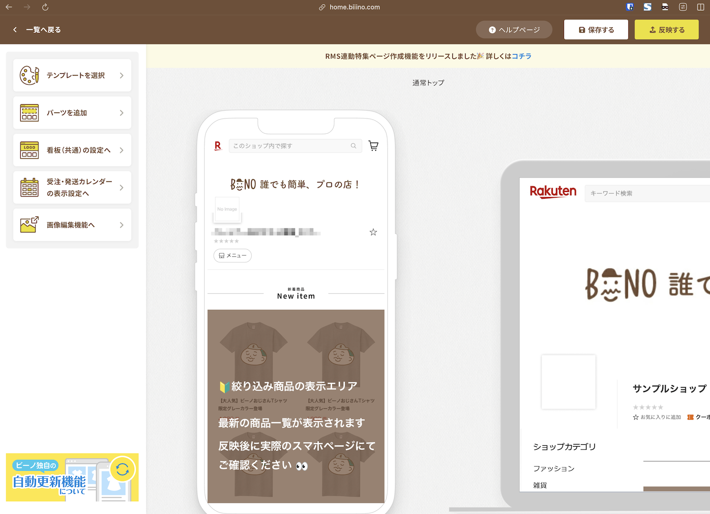 RMSで作成した新店舗トップページを、ビーノでご編集する方法は以上となります。