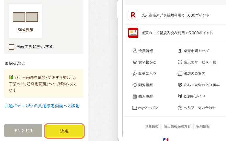 3. 「共通バナー(大)の共通設定画面へと移動」をクリック